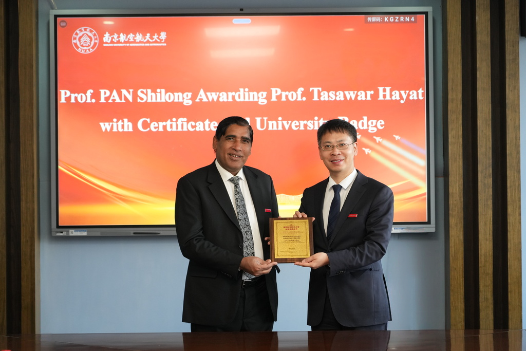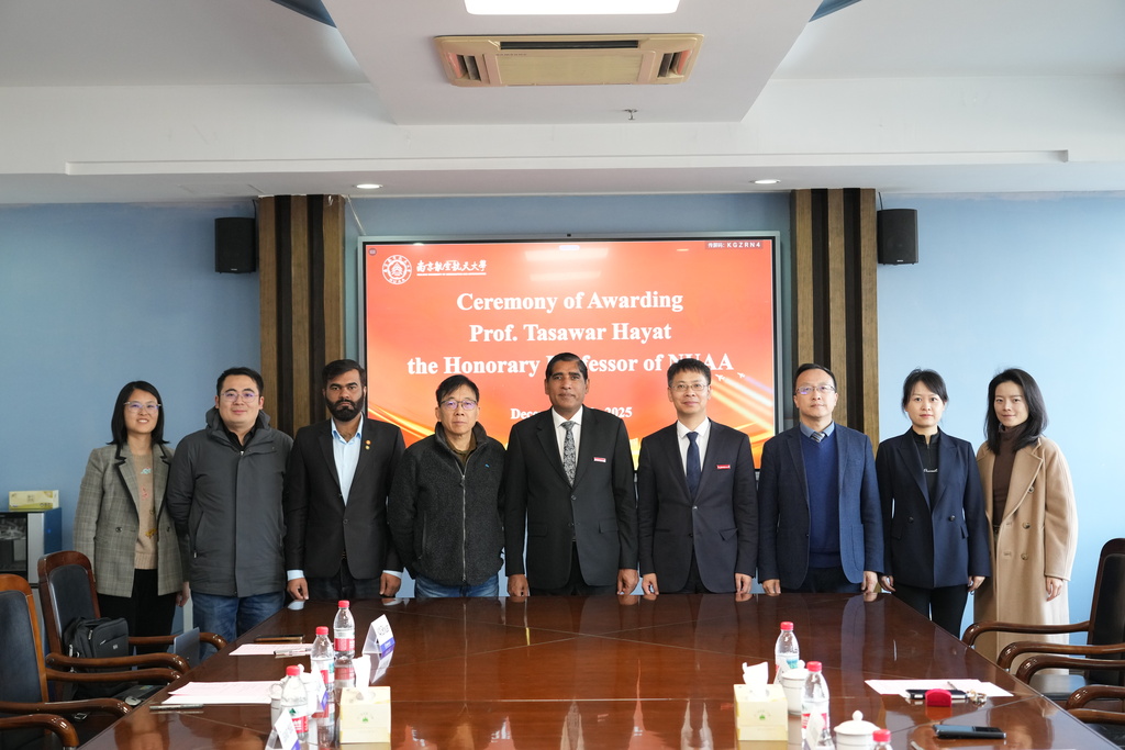 12月18日,发展中国家科学院院士、巴基斯坦科学院院士、真纳大学教授塔萨瓦尔・哈亚特受聘南京航空航天大学名誉教授仪式在明故宫校区举行。校长助理潘时龙,国际化部部长赖际舟,国际合作处副处长徐智鑫,航空学院副院长陈提及相关师生代表出席仪式。仪式由陈提主持。